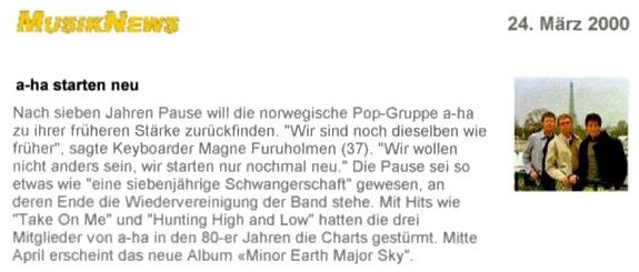 inzwischen allgemein bekannt. "A-ha zurück
