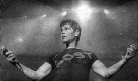 Sänger Morton Harket in schwarzer Lederhose und engem T-Shirt.