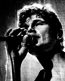 Harket, der Sänger, trägt enge, cremefarbene Lederhosen